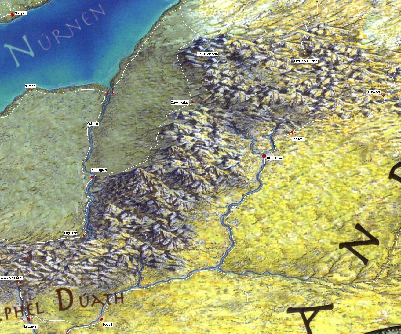 I still cannot find which of the four rivers that flowed into the Sea of nurnen was the Gurthrant though, at least in the game  8-| Any theories?